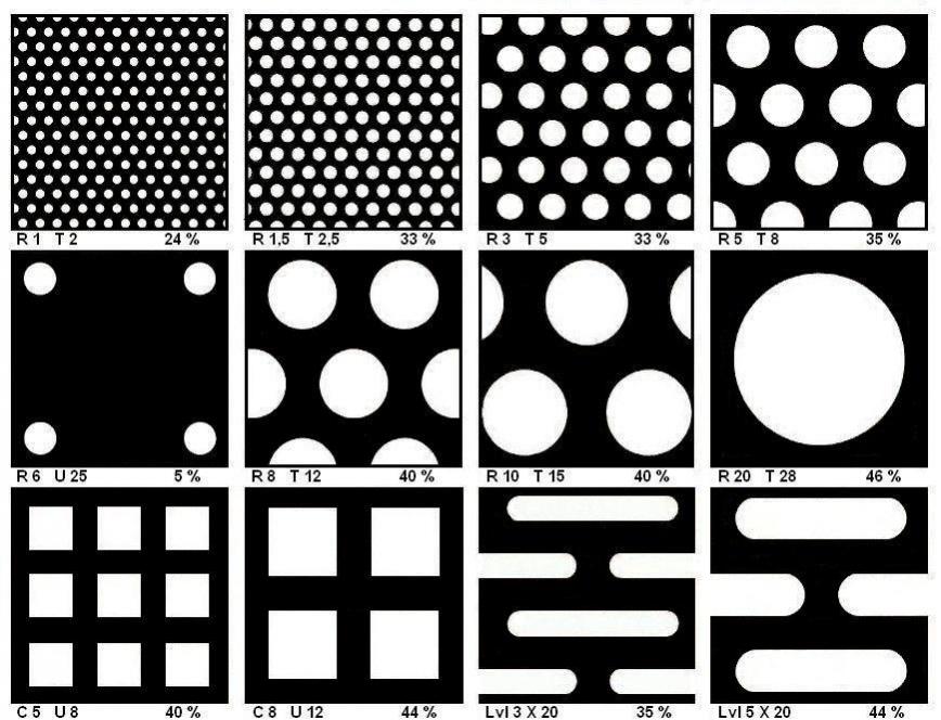 El formatos de las planchas perforadas es habitualmente de 1000 x 2000 mm pudiendo solicitar otros formatos a pedido.